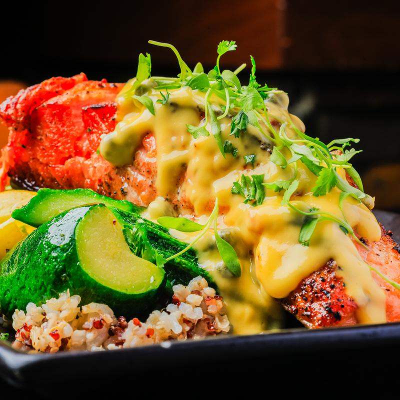 Lemon beurre blanc, wild rice & quinoa, seasonal vegetables