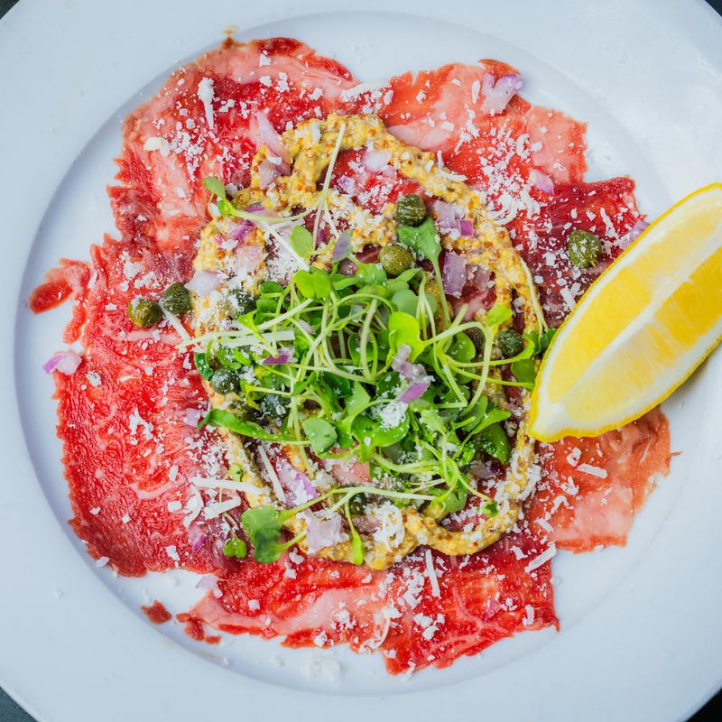 Capers, arugula, red onion, stone mustard, olive oil, parmesan